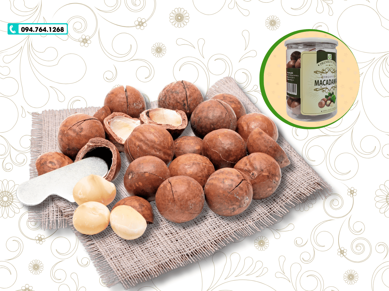 Thông tin liên hệ HTFood. SĐT/Zalo: 094.764.1268. Website: htfood.vn. Hãy trải nghiệm ngay để tận hưởng lợi ích tuyệt vời từ hạt macca chất lượng cao!