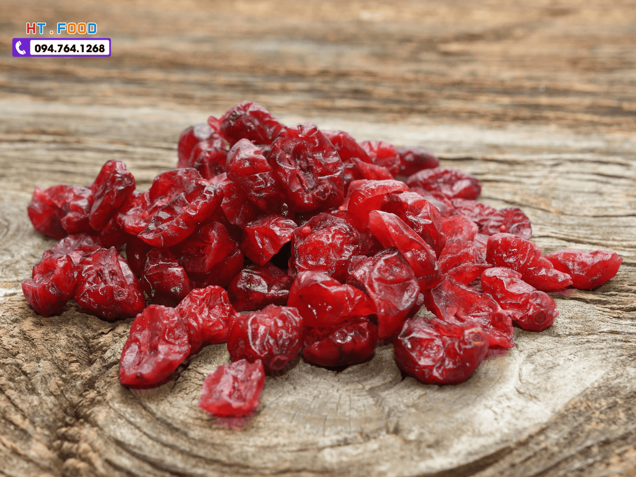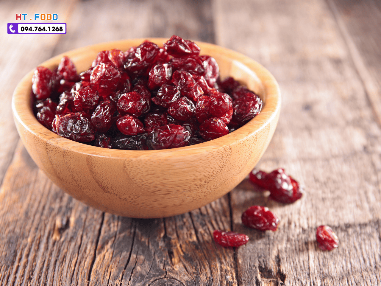 - Quả sấy khô: Là món ăn vặt tiện lợi và lý tưởng. Nam việt quất sấy khô có vị chua ngọt đặc trưng, bạn có thể trộn với sữa chua, yến mạch hoặc granola cho bữa sáng. Một gợi ý hấp dẫn là kết hợp chúng với các loại hạt dinh dưỡng. Ví dụ, trộn nam việt quất sấy khô với hạt điều rang muối hoặc hạt điều tách vỏ lụa để có một món ăn vặt vừa ngon miệng vừa giàu năng lượng.